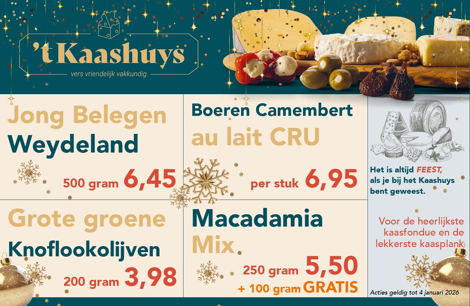 Dat is ook de reden dat ’t Kaashuys specialist is in Weydeland Kaas. Deze kaas wordt duurzaam gemaakt, vegetarisch gestremd en is lactosevrij. Met ruim 50 jaar ervaring gaan we met onze tijd mee. We gaan voor duurzame kaas, maar altijd met ambacht en kwaliteit voorop en de klant centraal.